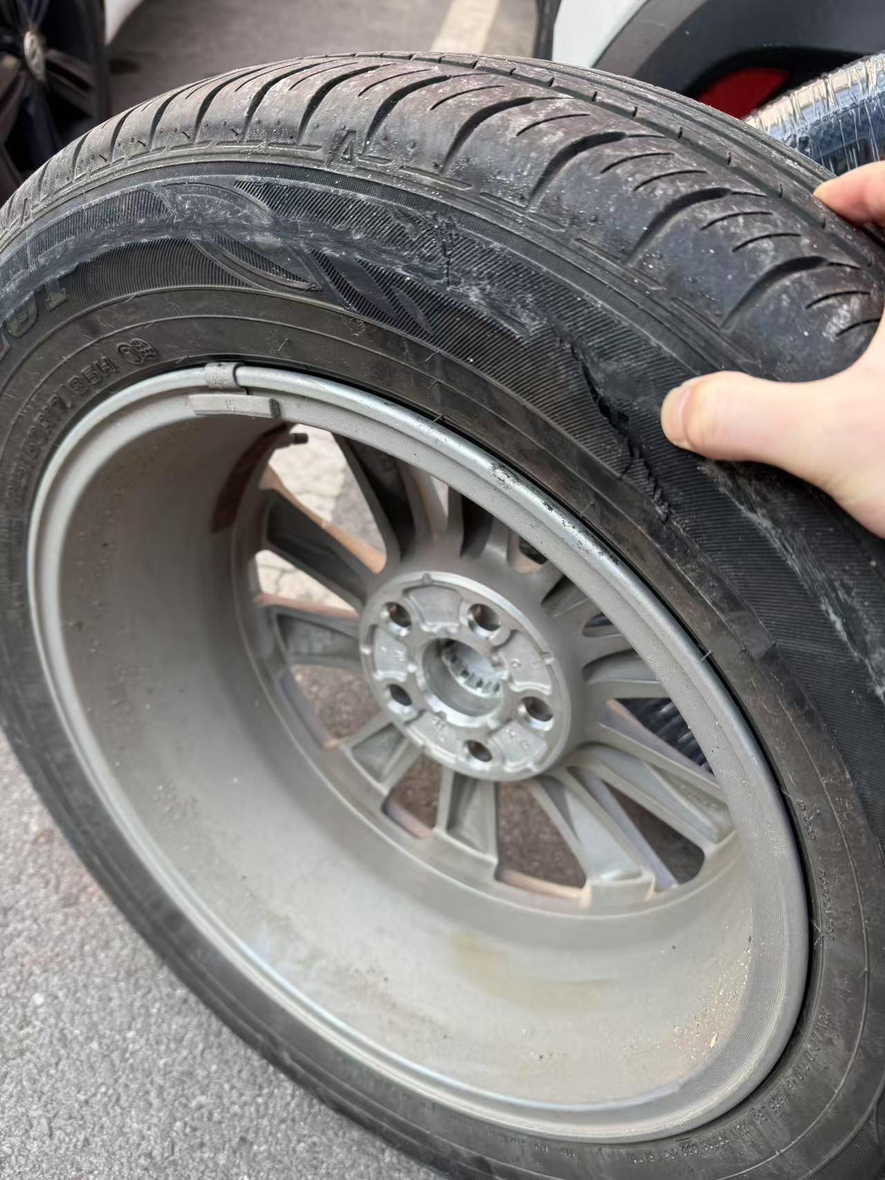 过年在村里开车的时候爆的胎,路非常窄,没有灯光一片漆黑,估计是挂到钢筋之类的了,爆胎后慢慢开了1KM驶入加油站换了备胎