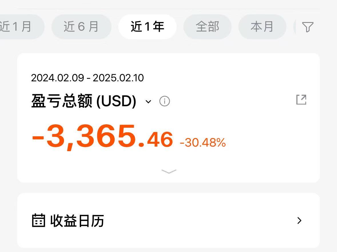 入金了1W美金左右,一年亏了接近3000美金